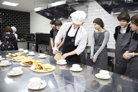Школьники приготовили горячее блюдо "Кессадилья с курицей и грибами", примерив профессию специалиста поварского и кондитерского дела, кроме того учащиеся готовили, дегустировали и анализировали виды чая разных народов мира