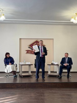 Слова приветствия прозвучали и от Андрея Сергеевича Щербакова, председателя правления Алтайского крайпотребсоюза, выпускника техникума. Андрей Сергеевич говорил о большой кооперативной семье, частью которой являются работники Барнаульского кооперативного техникума, о важности беречь и сохранять кооперативные ценности.